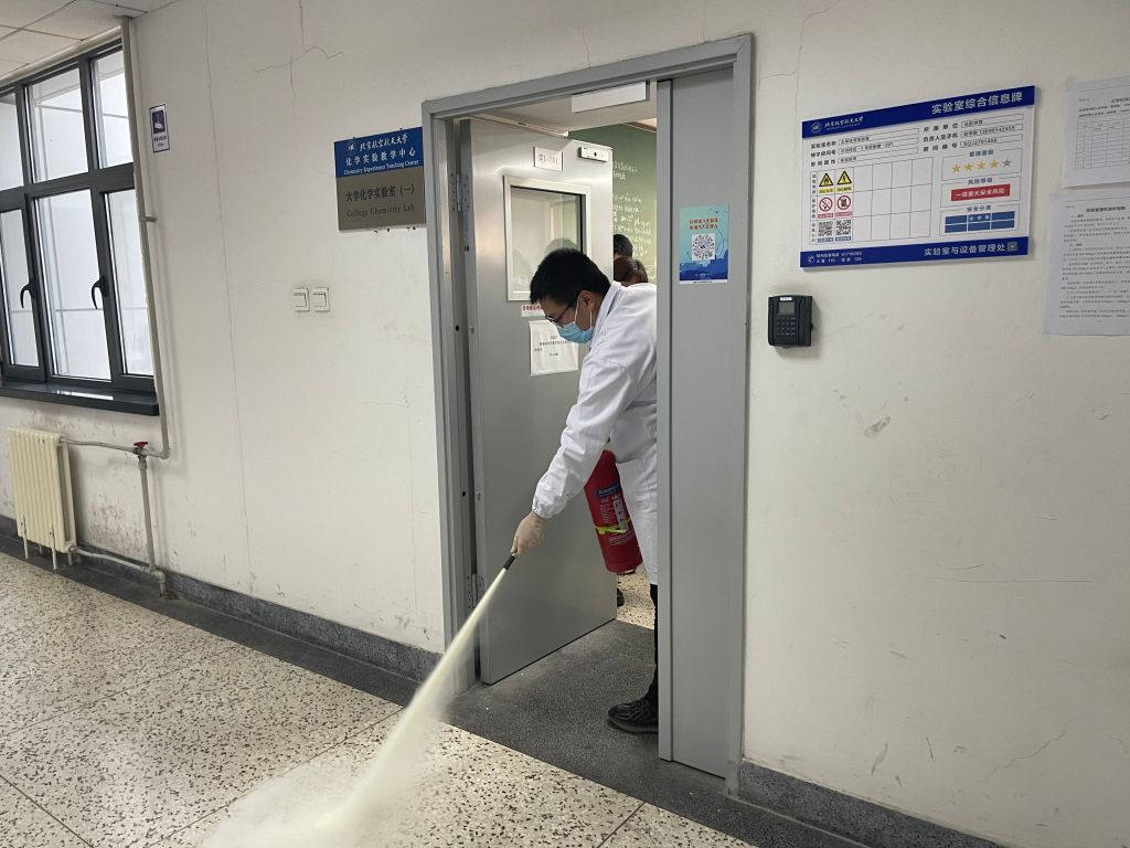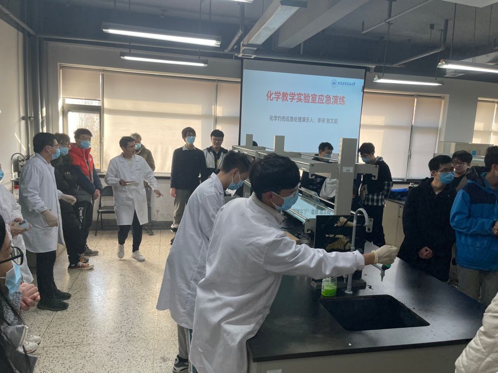 为了进一步加强学校安全工作,增强化学实验教学中心师生安全意识,提高学生对实验安全应急处置能力,本着坚持“安全第一,预防为主”的方针和“以人为本”的思想,2021年11月24日化学实验教学中心(平台)在实验楼1号楼301室进行了实验室安全培训及应急演练。中心全体实验室负责教师和2018级本科生(2022年毕业班)及10余名博、硕士研究生等50余人参加了本次演练。