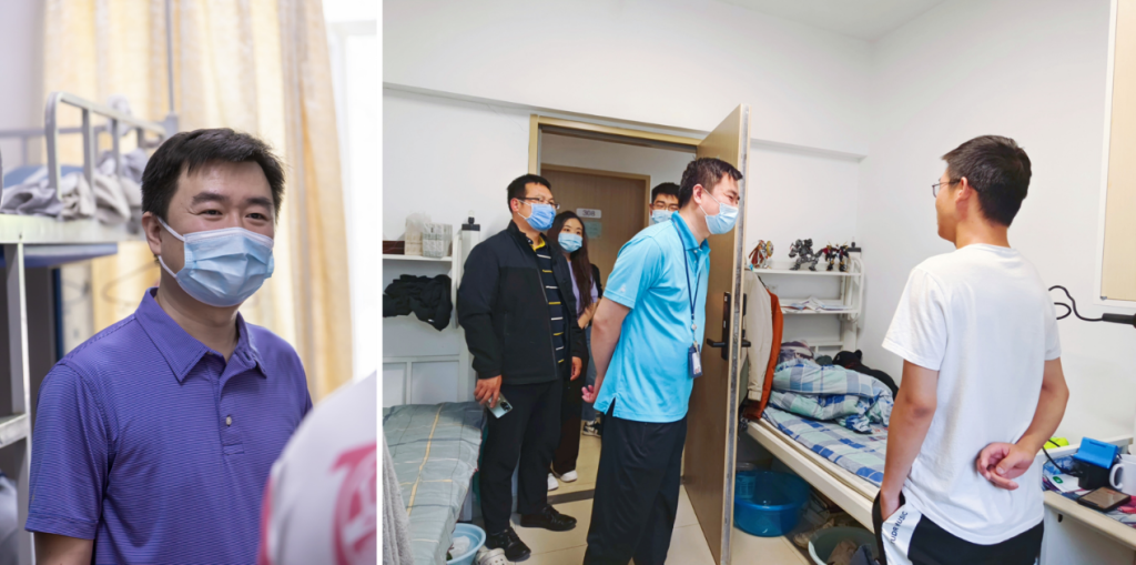 beat365中文唯一官网院长刘明杰一行到实验7号楼研究生工位、沙河东区和西区宿舍看望本研学生,与同学们详细沟通了学习和科研进展,了解学生需求,鼓励同学们合理安排好科研、上课、学习及生活,积极锻炼身体,以实际行动守护美丽校园。