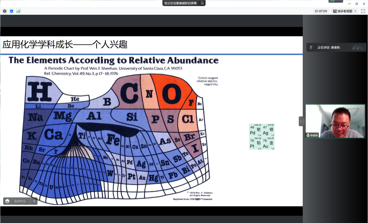 康建新老师紧随其后,通过货币材质选择的实例充满趣味性地引入了对于应用化学专业的讲解,并从国家需求、经济效益等方面展示了应用化学的学科成长,帮助同学们更好地了解应用化学专业。