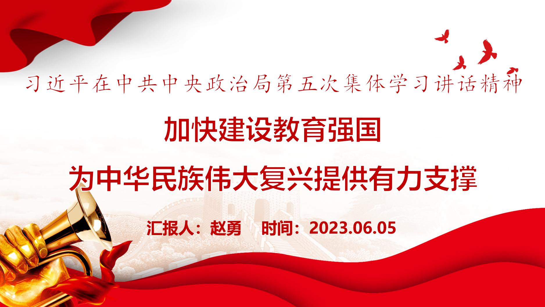 会上,党委委员赵勇围绕习近平在中共中央政治局第五次集体学习讲话精神,结合习近平总书记在北京育英学校考察时的重要讲话精神和浙江“千万工程”经验案例展开领学。他表示,建设教育强国是全党全社会的共同任务,要坚持和加强党对教育工作的全面领导。全党全国人民要坚定信心、久久为功,为早日实现教育强国目标而共同努力。广大教师要牢记为党育人、为国育才的初心使命,以人民教育家为榜样,以德立身、以德立学、以德施教。浙江“千万工程”经验,对推动学习贯彻习近平新时代中国特色社会主义思想走深走实,完成艰巨繁重的改革发展稳定任务,具有特殊重要意义。