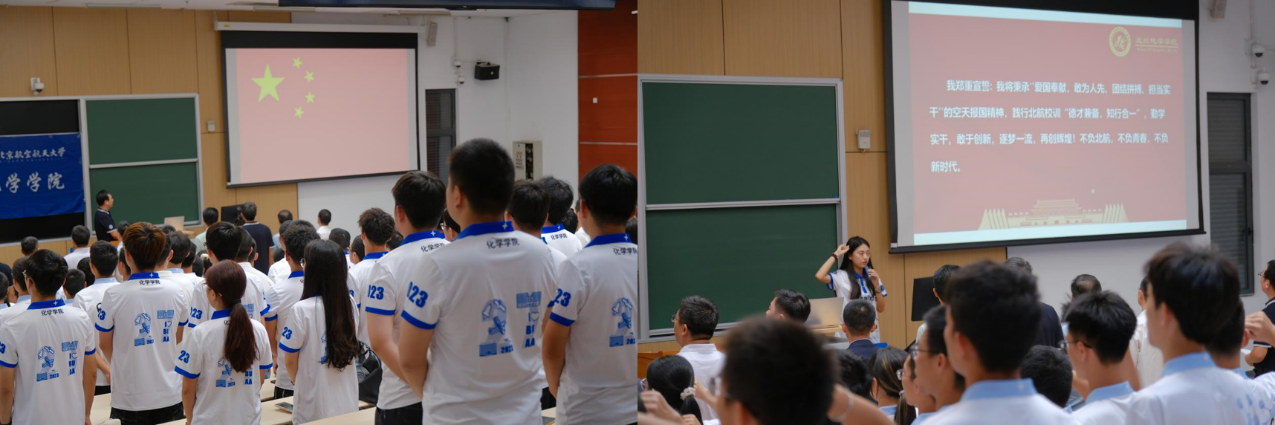 大会在庄严的国歌声中拉开了帷幕。齐唱雄壮的国歌后,集体观看《今日北航beat365中文唯一官网》,该视频生动形象地展现了beat365中文唯一官网的发展历程以及昂扬向上的精神风貌。随后,由beat365中文唯一官网教师代表李景老师、学生代表李超、丁索琪、盛昱皓、丁乙、崔雪纯同学依次发言。均讲述了对化学的热爱和追求以及对新生活的期待,展现了化院人有梦想、有勇气、有决心、有毅力的昂扬精神。在崔雪纯同学的领誓下,全体新生庄严宣誓,不负北航,不负青春,不负新时代!