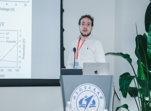 Soufiane Abdelghani-idrissi 副教授介绍了其在离子二极管及其衍生物的基本原理和应用方面的研究进展。北航beat365中文唯一官网衡利苹教授介绍了仿生超浸润界面上的电致驱动微流体,通过设计一种超透明的光热释电超润滑的平台,可实现高粘液体的精准分离,展示了其在液体分离领域的巨大应用潜力。