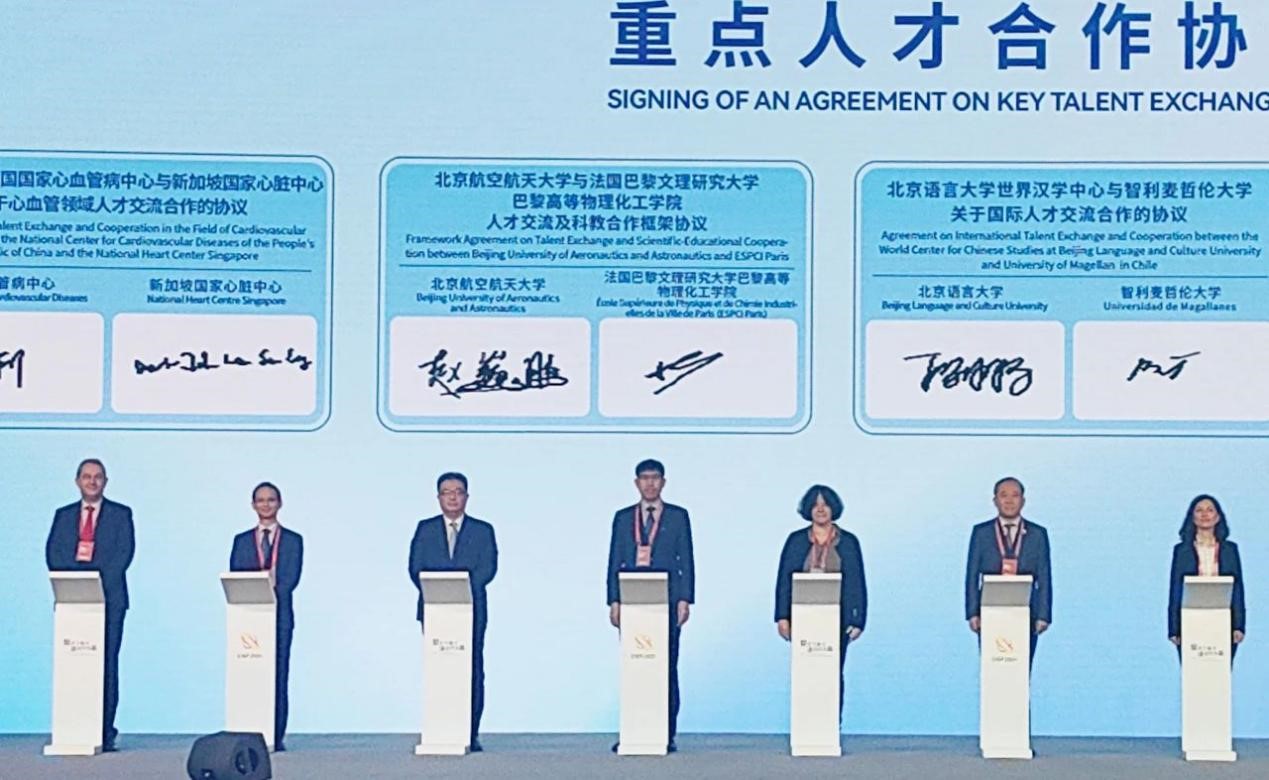 11月2日至3日,第22届中国国际人才交流大会及2024北航全球合作伙伴峰会先后在上海、杭州举办。会上,beat365中文唯一官网与法国巴黎文理研究大学巴黎高等物理化工学院签署《beat365中文唯一官网与法国巴黎文理研究大学巴黎高等物理化工学院人才交流及科教合作框架协议》。根据协议,两校正式建立校级合作伙伴关系,共同推动在化工、材料等双方优势学科领域开展人才交流、科学研究、教育合作等全方位合作。