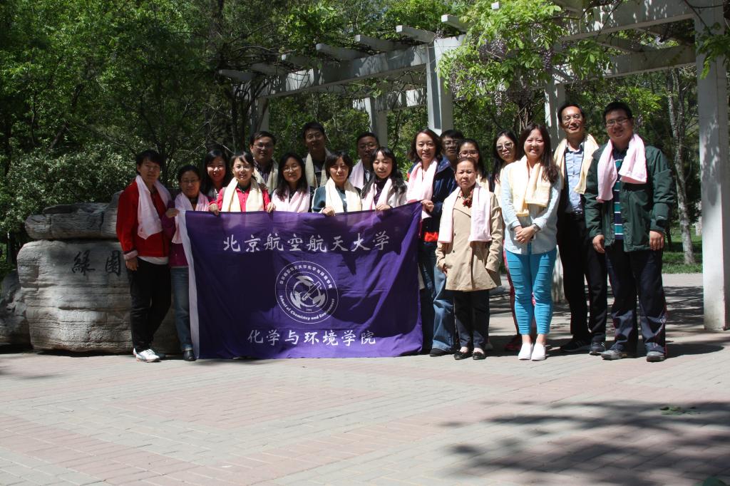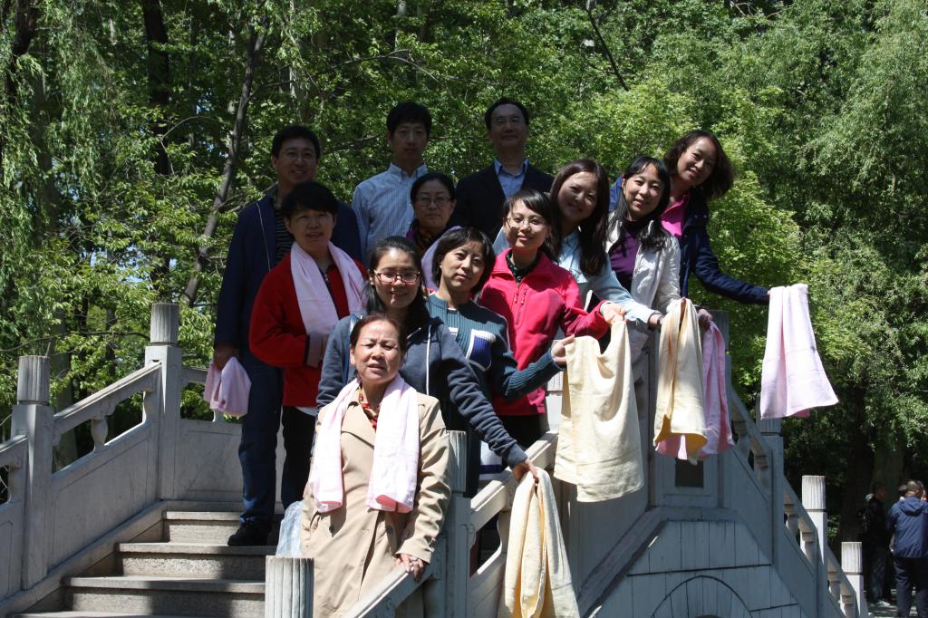中午饭后时分,教职工们准时集合在绿园南门,为了照顾沙河上课教师乘班车,首先进行了合影留念。