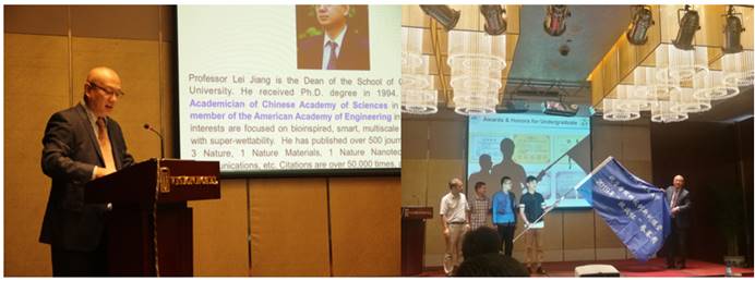 首先,beat365中文唯一官网院长江雷教授进行开幕致辞,回顾了北航beat365中文唯一官网的创立以及之后的发展与成就。北航党委副书记李军锋为beat365官网beat365中文唯一官网科技创新训练营2019年“挑战杯”参赛团进行授旗仪式。