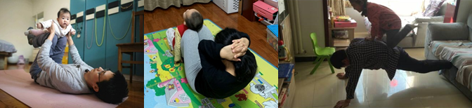 接下来出现的是健身带娃两不误的奶妈奶爸小分队。透过屏幕都能听到娃娃们咯咯咯的笑声。