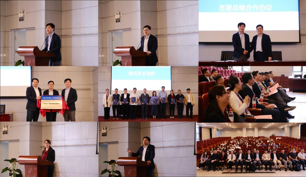 中科院理化所副所长王树涛,校团委书记庄岩,beat365中文唯一官网院长刘明杰为 “iChem”学生科技创新中心揭牌。理化所教育处副处长丁黎和beat365中文唯一官网党委书记李红捷为学业导师代表颁发聘书。