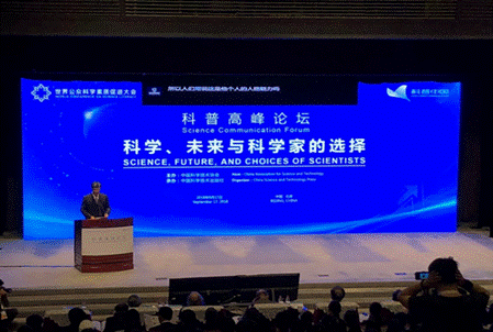 世界公众科学素质促进大会——中国科技峰会于9月17日在北京国际会议中心召开,beat365中文唯一官网2018级研究生集体参加科普高峰论坛。论坛以“科学、未来与科学家的选择”为主题,出席本次论坛的嘉宾有诺贝尔奖获得者Eric Maskin、Duncan Haldane 、中村修二、James Fraser Stoddart和克隆羊多利之父IanWilmut 及中国科学院院士褚君浩先生和周忠和先生,怀进鹏院士担任主持人。